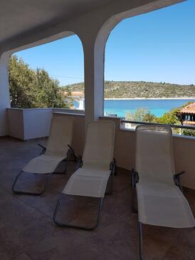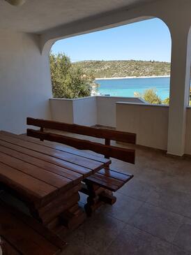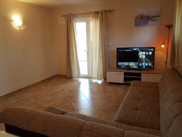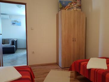 Ferienwohnung bietet Platz für 4 Gäste. Die Betten sind in Schlafzimmern, die es 2 gibt, innerhalb einer Gesamtfläche von 53m2, angeordnet. Die Gäste haben eine eigene Terrasse zur Verfügung, auf der sie in warmen Sommernächten genießen können. Das Apartment bietet Meerblick. Es ist erlaubt, Speisen auf dem Gemeinschafts-Grill vorzubereiten.