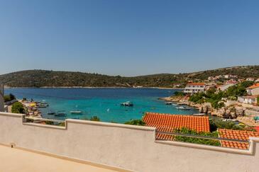 Ferienwohnung bietet Platz für 5 Gäste. Die Betten sind in Schlafzimmern, die es 2 gibt, und in Wohnzimmer, innerhalb einer Gesamtfläche von 48m2, angeordnet. Die Gäste haben eine eigene Terrasse zur Verfügung, auf der sie in warmen Sommernächten genießen können. Das Apartment bietet Meerblick. Es ist erlaubt, Speisen auf dem Gemeinschafts-Grill vorzubereiten.