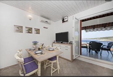 Ferienwohnung bietet Platz für 4 Gäste. Die Betten sind in Schlafzimmern, die es 2 gibt, innerhalb einer Gesamtfläche von 33m2, angeordnet. Die Gäste haben eine eigene Terrasse zur Verfügung, auf der sie in warmen Sommernächten genießen können. Das Apartment bietet Meerblick. Es ist erlaubt, Speisen auf dem Gemeinschafts-Grill vorzubereiten.