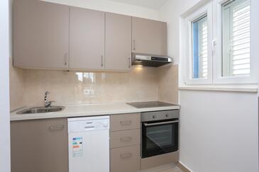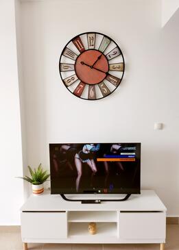Ferienwohnung bietet Platz für 3 Gäste. Die Betten sind in Schlafzimmern, die es 1 gibt, und in Wohnzimmer, innerhalb einer Gesamtfläche von 31m2, angeordnet. Die Gäste haben eine eigene Terrasse zur Verfügung, auf der sie in warmen Sommernächten genießen können. Das Apartment bietet Meerblick. Es ist erlaubt, Speisen auf dem Gemeinschafts-Grill vorzubereiten.
