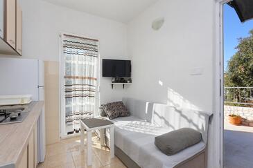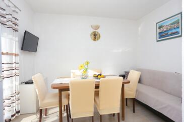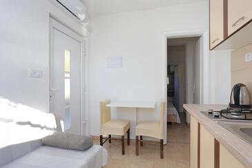 Ferienwohnung bietet Platz für 6 Gäste. Die Betten sind in Schlafzimmern, die es 3 gibt, innerhalb einer Gesamtfläche von 62m2, angeordnet. Die Gäste haben eine eigene Terrasse zur Verfügung, auf der sie in warmen Sommernächten genießen können. Das Apartment bietet Meerblick. Für vollen Genuss und Entspannung gibt es einen privaten Grill für Gäste dieser Unterkunft. Räume der gebuchten Unterkunftseinheit werden nicht in eine Ganze verbunden.
