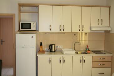 Ferienwohnung bietet Platz für 4 Gäste. Die Betten sind in Schlafzimmern, die es 1 gibt, und in Wohnzimmer, innerhalb einer Gesamtfläche von 40m2, angeordnet. Die Gäste haben eine eigene Terrasse zur Verfügung, auf der sie in warmen Sommernächten genießen können. Es ist erlaubt, Speisen auf dem Gemeinschafts-Grill vorzubereiten.
