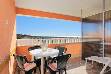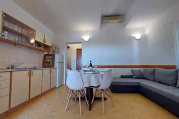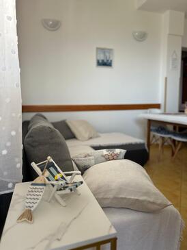 Ferienwohnung bietet Platz für 5 Gäste. Die Betten sind in Schlafzimmern, die es 2 gibt, und in Wohnzimmer, innerhalb einer Gesamtfläche von 36m2, angeordnet. Die Gäste haben eine eigene Terrasse zur Verfügung, auf der sie in warmen Sommernächten genießen können. Das Apartment bietet Meerblick. Es ist erlaubt, Speisen auf dem Gemeinschafts-Grill vorzubereiten.