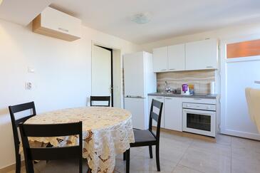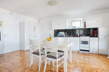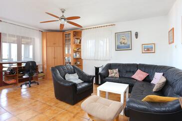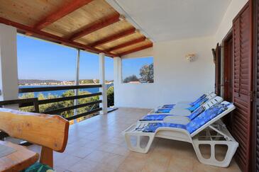 Ferienwohnung bietet Platz für 6 Gäste. Die Betten sind in Schlafzimmern, die es 2 gibt, und in Wohnzimmer, innerhalb einer Gesamtfläche von 61m2, angeordnet. Die Gäste haben eine eigene Terrasse zur Verfügung, auf der sie in warmen Sommernächten genießen können. Das Apartment bietet Meerblick. Es ist erlaubt, Speisen auf dem Gemeinschafts-Grill vorzubereiten.