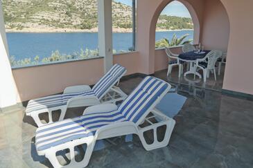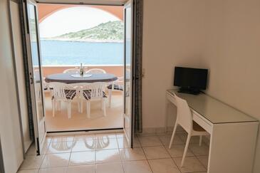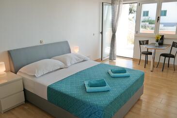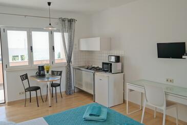 Ferienwohnung bietet Platz für 2 Gäste. Die Betten sind in Schlafzimmern, die es 1 gibt, innerhalb einer Gesamtfläche von 28m2, angeordnet. Die Gäste haben eine eigene Terrasse zur Verfügung, auf der sie in warmen Sommernächten genießen können. Das Apartment bietet Meerblick. Es ist erlaubt, Speisen auf dem Gemeinschafts-Grill vorzubereiten.