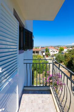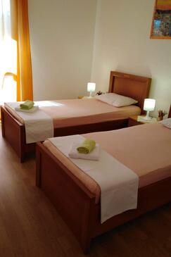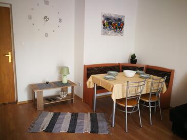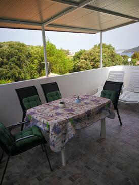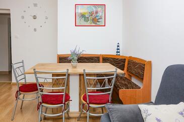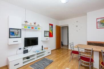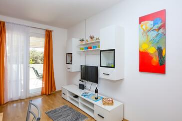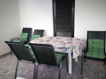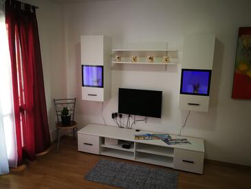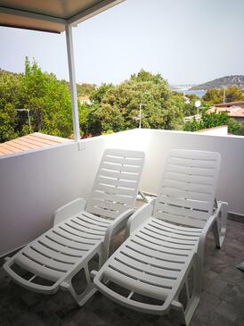 Ferienwohnung bietet Platz für 5 Gäste. Die Betten sind in Schlafzimmern, die es 2 gibt, und in Wohnzimmer, innerhalb einer Gesamtfläche von 50m2, angeordnet. Die Gäste haben eine eigene Terrasse zur Verfügung, auf der sie in warmen Sommernächten genießen können. Das Apartment bietet Meerblick. Es ist erlaubt, Speisen auf dem Gemeinschafts-Grill vorzubereiten.
