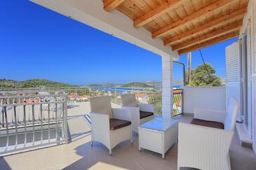 Haus bietet Platz für 9 Gäste. Die Betten sind in Schlafzimmern, die es 5 gibt, innerhalb einer Gesamtfläche von 111m2, angeordnet. Die Gäste haben eine eigene Terrasse zur Verfügung, auf der sie in warmen Sommernächten genießen können. Das Haus bietet Meerblick. Für vollen Genuss und Entspannung gibt es einen privaten Grill für Gäste dieser Unterkunft. Während ihres Aufenthalts können sich Gäste im privaten Schwimmbad entspannen. Räume der gebuchten Unterkunftseinheit werden nicht in eine Ganze verbunden.