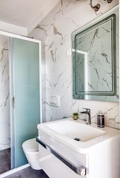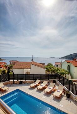 Haus bietet Platz für 10 Gäste. Die Betten sind in Schlafzimmern, die es 4 gibt, und in Wohnzimmer, innerhalb einer Gesamtfläche von 122m2, angeordnet. Die Gäste haben eine eigene Terrasse zur Verfügung, auf der sie in warmen Sommernächten genießen können. Das Haus bietet Meerblick. Für vollen Genuss und Entspannung gibt es einen privaten Grill für Gäste dieser Unterkunft. Während ihres Aufenthalts können sich Gäste im privaten Schwimmbad entspannen.