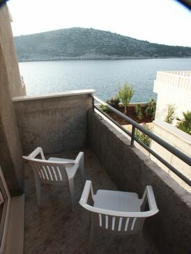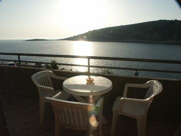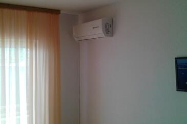 Ferienwohnung bietet Platz für 4 Gäste. Die Betten sind in Schlafzimmern, die es 2 gibt, innerhalb einer Gesamtfläche von 30m2, angeordnet. Die Gäste haben eine eigene Terrasse zur Verfügung, auf der sie in warmen Sommernächten genießen können. Das Apartment bietet Meerblick. Es ist erlaubt, Speisen auf dem Gemeinschafts-Grill vorzubereiten.