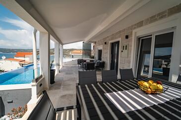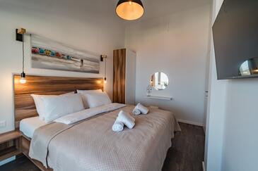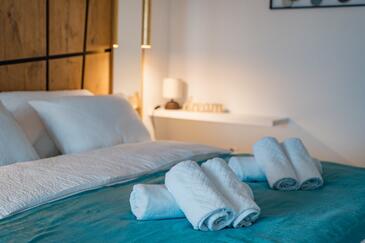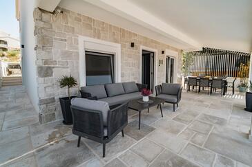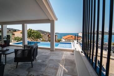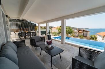 Haus bietet Platz für 6 Gäste. Die Betten sind in Schlafzimmern, die es 3 gibt, innerhalb einer Gesamtfläche von 94m2, angeordnet. Die Gäste haben eine eigene Terrasse zur Verfügung, auf der sie in warmen Sommernächten genießen können. Das Haus bietet Meerblick. Für vollen Genuss und Entspannung gibt es einen privaten Grill für Gäste dieser Unterkunft. Während ihres Aufenthalts können sich Gäste im privaten Schwimmbad entspannen. In der Unterkunftseinheit besteht die Möglichkeit des Mitbringens von Haustieren, und die Dienstleistung ist im Preis der Unterkunft enthalten.