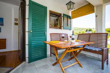 Ferienwohnung bietet Platz für 4 Gäste. Die Betten sind in Schlafzimmern, die es 2 gibt, innerhalb einer Gesamtfläche von 43m2, angeordnet. Die Gäste haben eine eigene Terrasse zur Verfügung, auf der sie in warmen Sommernächten genießen können. Es ist erlaubt, Speisen auf dem Gemeinschafts-Grill vorzubereiten.