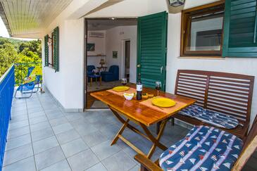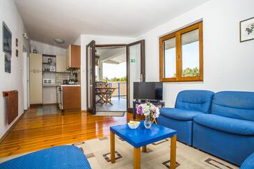 Ferienwohnung bietet Platz für 4 Gäste. Die Betten sind in Schlafzimmern, die es 2 gibt, innerhalb einer Gesamtfläche von 43m2, angeordnet. Die Gäste haben eine eigene Terrasse zur Verfügung, auf der sie in warmen Sommernächten genießen können. Es ist erlaubt, Speisen auf dem Gemeinschafts-Grill vorzubereiten.