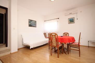 Ferienwohnung bietet Platz für 6 Gäste. Die Betten sind in Schlafzimmern, die es 2 gibt, und in Esszimmer, innerhalb einer Gesamtfläche von 47m2, angeordnet. Die Gäste haben eine eigene Terrasse zur Verfügung, auf der sie in warmen Sommernächten genießen können. Es ist erlaubt, Speisen auf dem Gemeinschafts-Grill vorzubereiten.