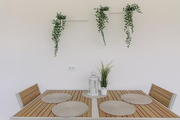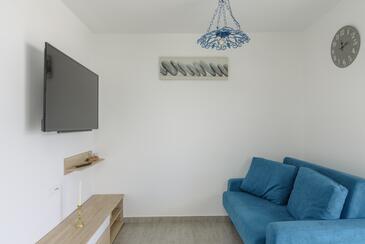 Ferienwohnung bietet Platz für 5 Gäste. Die Betten sind in Schlafzimmern, die es 2 gibt, und in Wohnzimmer, innerhalb einer Gesamtfläche von 55m2, angeordnet. Die Gäste haben eine eigene Terrasse zur Verfügung, auf der sie in warmen Sommernächten genießen können. Das Apartment bietet Meerblick.