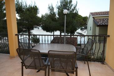 Ferienwohnung bietet Platz für 5 Gäste. Die Betten sind in Schlafzimmern, die es 2 gibt, und in Wohnzimmer, innerhalb einer Gesamtfläche von 63m2, angeordnet. Die Gäste haben eine eigene Terrasse zur Verfügung, auf der sie in warmen Sommernächten genießen können. Das Apartment bietet Meerblick. Es ist erlaubt, Speisen auf dem Gemeinschafts-Grill vorzubereiten. In der Unterkunftseinheit besteht die Möglichkeit des Mitbringens von Haustieren gegen Aufpreis. In der gebuchten Unterkunftseinheit zahlt man am Ort ein Depositum ( der Preis ist an der Internetseite angeführt ).