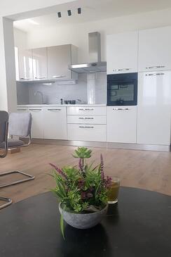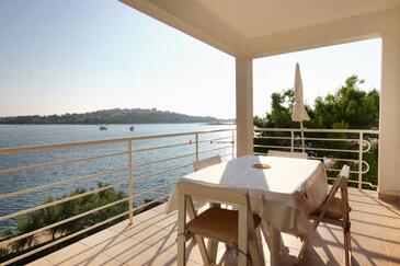 Ferienwohnung bietet Platz für 6 Gäste. Die Betten sind in Schlafzimmern, die es 2 gibt, und in Wohnzimmer, innerhalb einer Gesamtfläche von 64m2, angeordnet. Die Gäste haben eine eigene Terrasse zur Verfügung, auf der sie in warmen Sommernächten genießen können. Das Apartment bietet Meerblick. Es ist erlaubt, Speisen auf dem Gemeinschafts-Grill vorzubereiten.