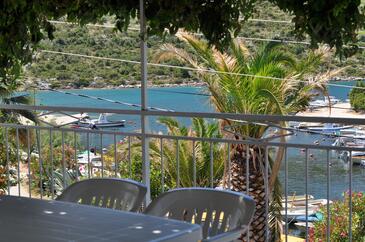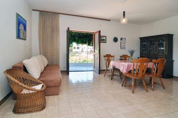 Ferienwohnung bietet Platz für 5 Gäste. Die Betten sind in Schlafzimmern, die es 2 gibt, und in Esszimmer, innerhalb einer Gesamtfläche von 53m2, angeordnet. Die Gäste haben eine eigene Terrasse zur Verfügung, auf der sie in warmen Sommernächten genießen können. Das Apartment bietet Meerblick. Es ist erlaubt, Speisen auf dem Gemeinschafts-Grill vorzubereiten.