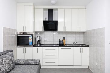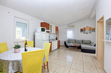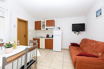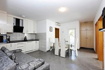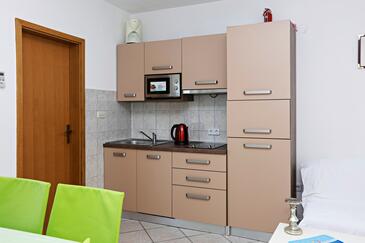 Ferienwohnung bietet Platz für 5 Gäste. Die Betten sind in Schlafzimmern, die es 2 gibt, innerhalb einer Gesamtfläche von 41m2, angeordnet. Die Gäste haben eine eigene Terrasse zur Verfügung, auf der sie in warmen Sommernächten genießen können. Das Apartment bietet Meerblick. Es ist erlaubt, Speisen auf dem Gemeinschafts-Grill vorzubereiten. Während ihres Aufenthalts können Gäste das gemeinsam zur Nutzung stehende Schwimmbad benutzen.