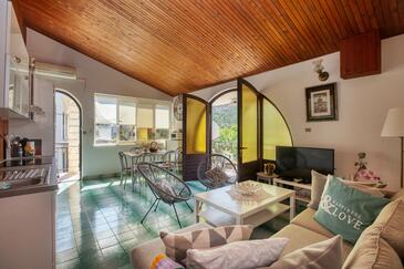 Ferienwohnung bietet Platz für 5 Gäste. Die Betten sind in Schlafzimmern, die es 3 gibt, innerhalb einer Gesamtfläche von 59m2, angeordnet. Die Gäste haben einen eigenen Balkon zur Verfügung, auf der sie in warmen Sommernächten genießen können. Das Apartment bietet Meerblick. Es ist erlaubt, Speisen auf dem Gemeinschafts-Grill vorzubereiten.