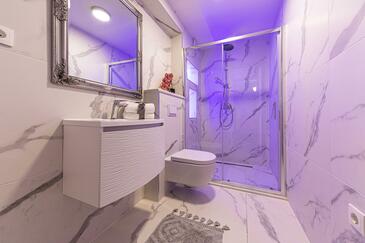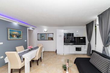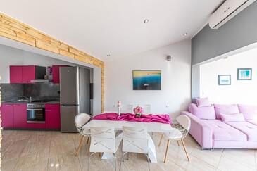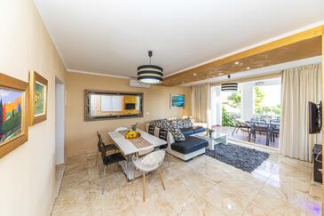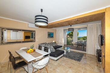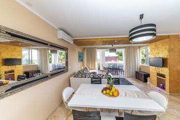 Haus bietet Platz für 15 Gäste. Die Betten sind in Schlafzimmern, die es 5 gibt, und in Wohnzimmer, innerhalb einer Gesamtfläche von 150m2, angeordnet. Die Gäste haben eine eigene Terrasse zur Verfügung, auf der sie in warmen Sommernächten genießen können. Das Haus bietet Meerblick. Für vollen Genuss und Entspannung gibt es einen privaten Grill für Gäste dieser Unterkunft. Während ihres Aufenthalts können sich Gäste im privaten Schwimmbad entspannen. Räume der gebuchten Unterkunftseinheit werden nicht in eine Ganze verbunden.