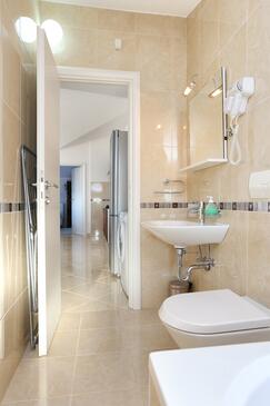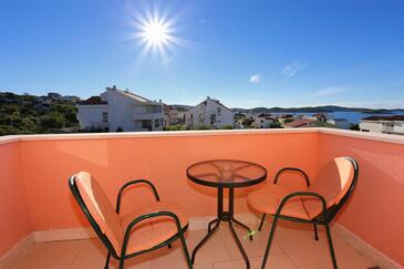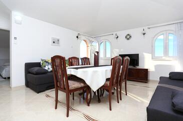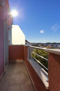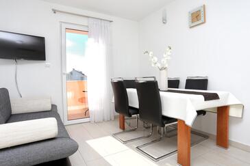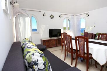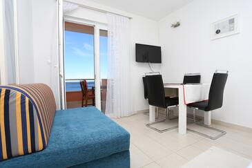 Ferienwohnung bietet Platz für 6 Gäste. Die Betten sind in Schlafzimmern, die es 2 gibt, und in Wohnzimmer, innerhalb einer Gesamtfläche von 57m2, angeordnet. Die Gäste haben einen eigenen Balkon zur Verfügung, auf der sie in warmen Sommernächten genießen können. Das Apartment bietet Meerblick. Es ist erlaubt, Speisen auf dem Gemeinschafts-Grill vorzubereiten.