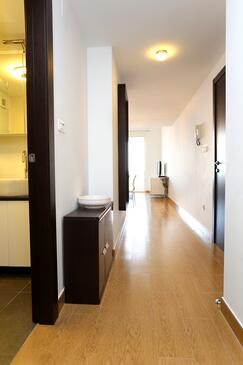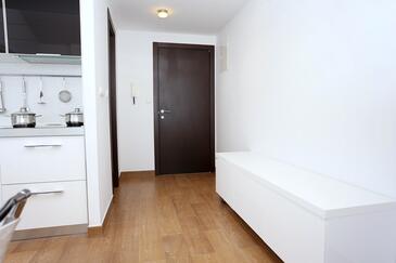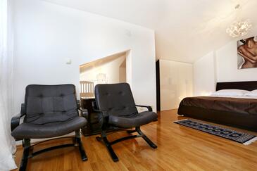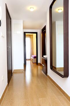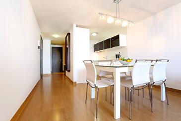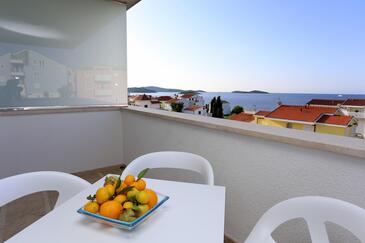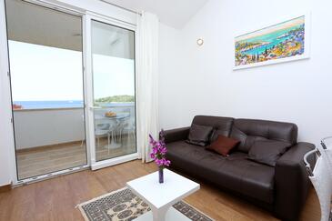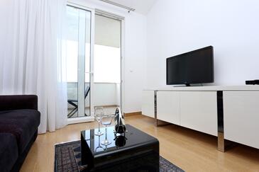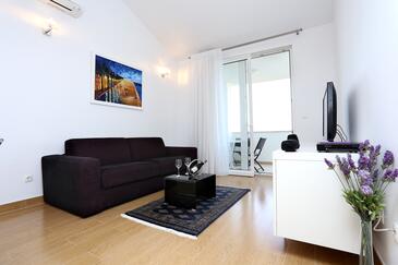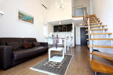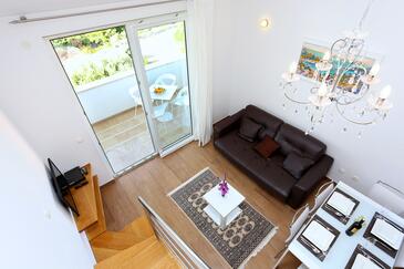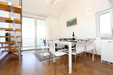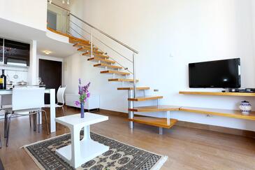 Ferienwohnung bietet Platz für 6 Gäste. Die Betten sind in Schlafzimmern, die es 2 gibt, und in Wohnzimmer, innerhalb einer Gesamtfläche von 59m2, angeordnet. Die Gäste haben eine eigene Terrasse zur Verfügung, auf der sie in warmen Sommernächten genießen können. Das Apartment bietet Meerblick. Es ist erlaubt, Speisen auf dem Gemeinschafts-Grill vorzubereiten.