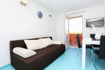 Ferienwohnung bietet Platz für 3 Gäste. Die Betten sind in Schlafzimmern, die es 1 gibt, und in Wohnzimmer, innerhalb einer Gesamtfläche von 27m2, angeordnet. Die Gäste haben einen eigenen Balkon zur Verfügung, auf der sie in warmen Sommernächten genießen können. Das Apartment bietet Meerblick. Es ist erlaubt, Speisen auf dem Gemeinschafts-Grill vorzubereiten.
