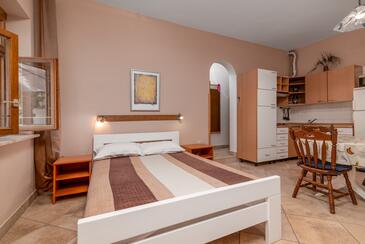 Ferienwohnung bietet Platz für 4 Gäste. Die Betten sind in Schlafzimmern, die es 2 gibt, innerhalb einer Gesamtfläche von 41m2, angeordnet. Die Gäste haben eine eigene Terrasse zur Verfügung, auf der sie in warmen Sommernächten genießen können. Es ist erlaubt, Speisen auf dem Gemeinschafts-Grill vorzubereiten. In der Unterkunftseinheit besteht die Möglichkeit des Mitbringens von Haustieren gegen Aufpreis. Räume der gebuchten Unterkunftseinheit werden nicht in eine Ganze verbunden.