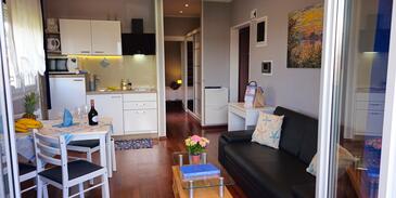 Ferienwohnung bietet Platz für 4 Gäste. Die Betten sind in Schlafzimmern, die es 1 gibt, und in Wohnzimmer, innerhalb einer Gesamtfläche von 38m2, angeordnet. Die Gäste haben einen eigenen Balkon zur Verfügung, auf der sie in warmen Sommernächten genießen können. Es ist erlaubt, Speisen auf dem Gemeinschafts-Grill vorzubereiten. In der Unterkunftseinheit besteht die Möglichkeit des Mitbringens von Haustieren gegen Aufpreis.