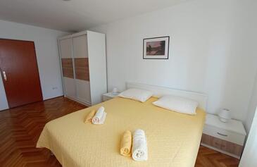 Ferienwohnung bietet Platz für 5 Gäste. Die Betten sind in Schlafzimmern, die es 3 gibt, innerhalb einer Gesamtfläche von 66m2, angeordnet. Die Gäste haben eine eigene Terrasse zur Verfügung, auf der sie in warmen Sommernächten genießen können. Es ist erlaubt, Speisen auf dem Gemeinschafts-Grill vorzubereiten.