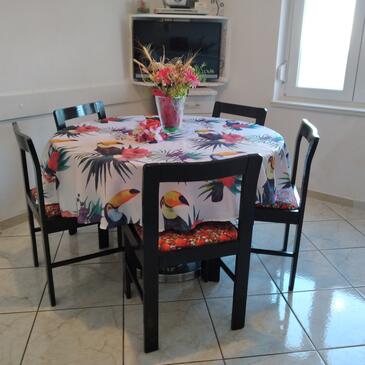Ferienwohnung bietet Platz für 5 Gäste. Die Betten sind in Schlafzimmern, die es 2 gibt, innerhalb einer Gesamtfläche von 43m2, angeordnet. Die Gäste haben eine eigene Terrasse zur Verfügung, auf der sie in warmen Sommernächten genießen können. Das Apartment bietet Meerblick. Es ist erlaubt, Speisen auf dem Gemeinschafts-Grill vorzubereiten. In der Unterkunftseinheit besteht die Möglichkeit des Mitbringens von Haustieren gegen Aufpreis. Räume der gebuchten Unterkunftseinheit werden nicht in eine Ganze verbunden.