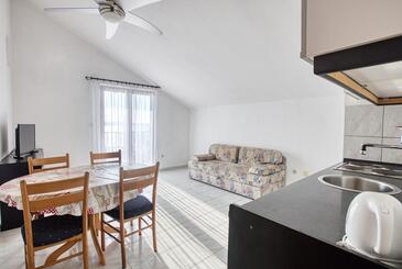 Ferienwohnung bietet Platz für 3 Gäste. Die Betten sind in Schlafzimmern, die es 1 gibt, und in Esszimmer, innerhalb einer Gesamtfläche von 37m2, angeordnet. Die Gäste haben einen eigenen Balkon zur Verfügung, auf der sie in warmen Sommernächten genießen können. Das Apartment bietet Meerblick. Es ist erlaubt, Speisen auf dem Gemeinschafts-Grill vorzubereiten.
