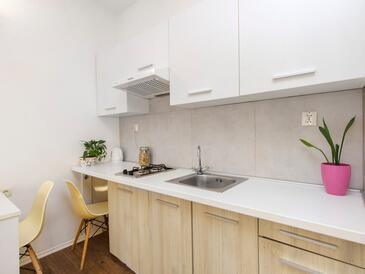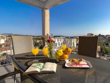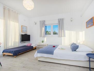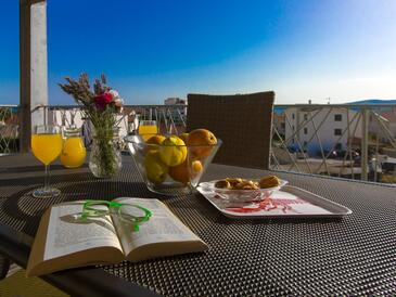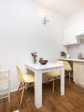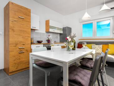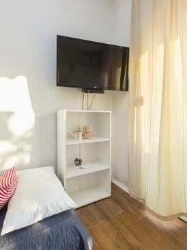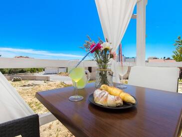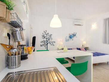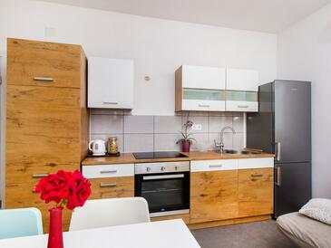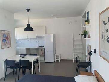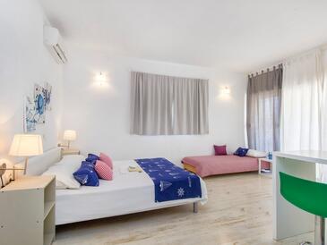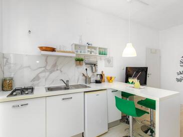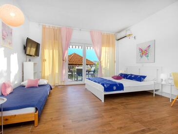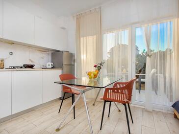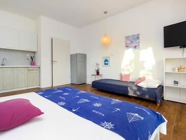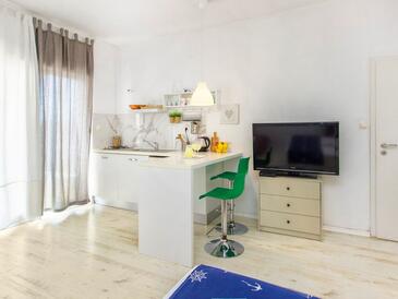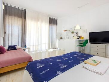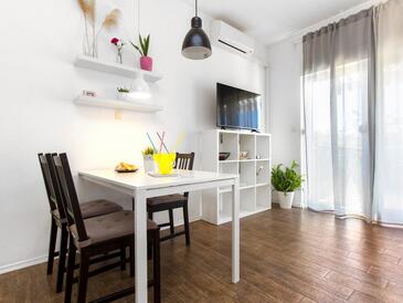 Ferienwohnung bietet Platz für 6 Gäste. Die Betten sind in Schlafzimmern, die es 2 gibt, und in Wohnzimmer, innerhalb einer Gesamtfläche von 50m2, angeordnet. Die Gäste haben eine eigene Terrasse zur Verfügung, auf der sie in warmen Sommernächten genießen können. Es ist erlaubt, Speisen auf dem Gemeinschafts-Grill vorzubereiten.