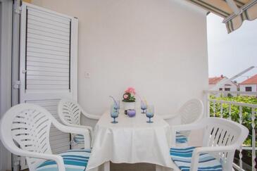 Ferienwohnung bietet Platz für 4 Gäste. Die Betten sind in Schlafzimmern, die es 2 gibt, innerhalb einer Gesamtfläche von 80m2, angeordnet. Die Gäste haben einen eigenen Balkon zur Verfügung, auf der sie in warmen Sommernächten genießen können. Das Apartment bietet Meerblick. Für vollen Genuss und Entspannung gibt es einen privaten Grill für Gäste dieser Unterkunft.