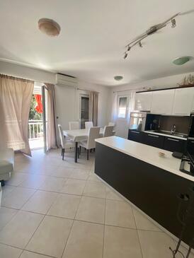 Ferienwohnung bietet Platz für 6 Gäste. Die Betten sind in Schlafzimmern, die es 3 gibt, innerhalb einer Gesamtfläche von 82m2, angeordnet. Die Gäste haben einen eigenen Balkon zur Verfügung, auf der sie in warmen Sommernächten genießen können. Das Apartment bietet Meerblick.