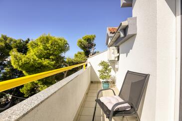 Ferienwohnung bietet Platz für 6 Gäste. Die Betten sind in Schlafzimmern, die es 3 gibt, innerhalb einer Gesamtfläche von 76m2, angeordnet. Die Gäste haben eine eigene Terrasse zur Verfügung, auf der sie in warmen Sommernächten genießen können. Das Apartment bietet Meerblick.