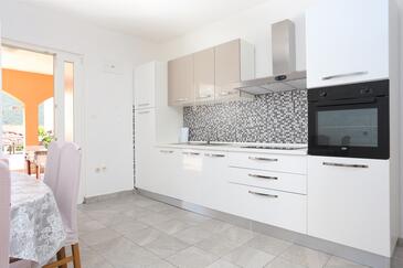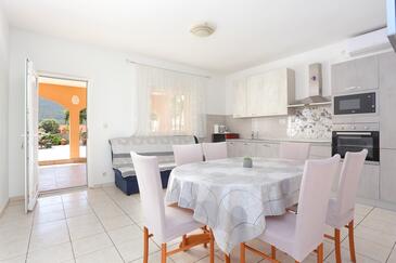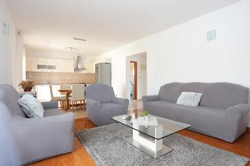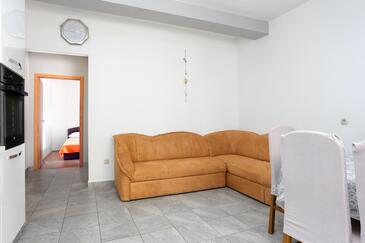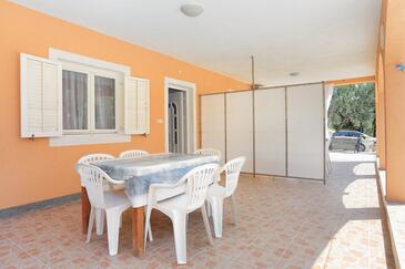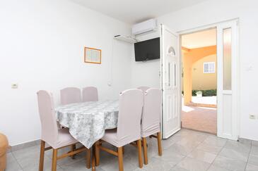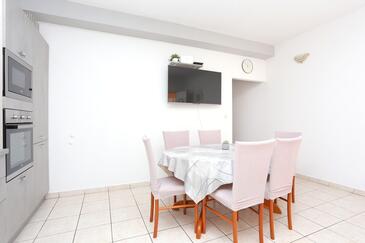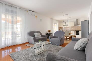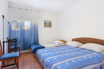 Ferienwohnung bietet Platz für 6 Gäste. Die Betten sind in Schlafzimmern, die es 3 gibt, innerhalb einer Gesamtfläche von 77m2, angeordnet. Die Gäste haben eine eigene Terrasse zur Verfügung, auf der sie in warmen Sommernächten genießen können. Es ist erlaubt, Speisen auf dem Gemeinschafts-Grill vorzubereiten.