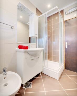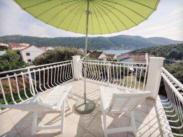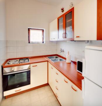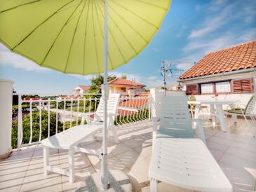 Ferienwohnung bietet Platz für 5 Gäste. Die Betten sind in Schlafzimmern, die es 2 gibt, und in Wohnzimmer, innerhalb einer Gesamtfläche von 54m2, angeordnet. Die Gäste haben eine eigene Terrasse zur Verfügung, auf der sie in warmen Sommernächten genießen können. Das Apartment bietet Meerblick. Es ist erlaubt, Speisen auf dem Gemeinschafts-Grill vorzubereiten.
