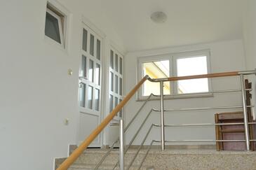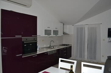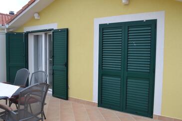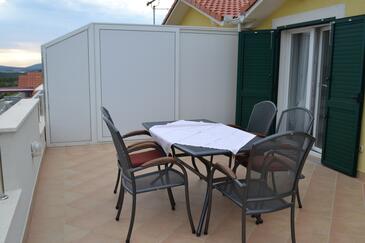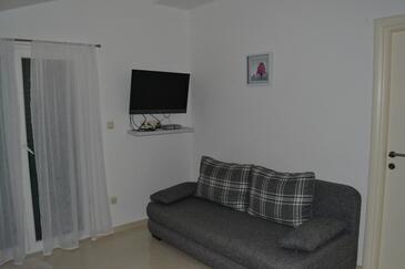 Ferienwohnung bietet Platz für 4 Gäste. Die Betten sind in Schlafzimmern, die es 2 gibt, innerhalb einer Gesamtfläche von 51m2, angeordnet. Die Gäste haben eine eigene Terrasse zur Verfügung, auf der sie in warmen Sommernächten genießen können. Das Apartment bietet Meerblick. Es ist erlaubt, Speisen auf dem Gemeinschafts-Grill vorzubereiten.