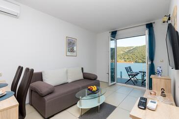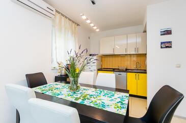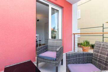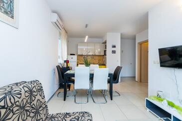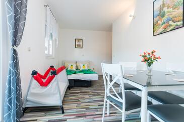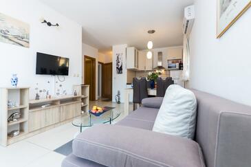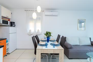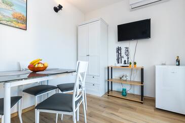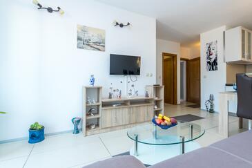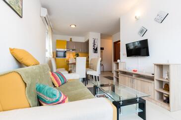 Ferienwohnung bietet Platz für 4 Gäste. Die Betten sind in Schlafzimmern, die es 1 gibt, und in Wohnzimmer, innerhalb einer Gesamtfläche von 34m2, angeordnet. Die Gäste haben eine eigene Terrasse zur Verfügung, auf der sie in warmen Sommernächten genießen können. Das Apartment bietet Meerblick. Es ist erlaubt, Speisen auf dem Gemeinschafts-Grill vorzubereiten. In der Unterkunftseinheit besteht die Möglichkeit des Mitbringens von Haustieren gegen Aufpreis.