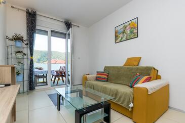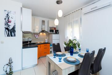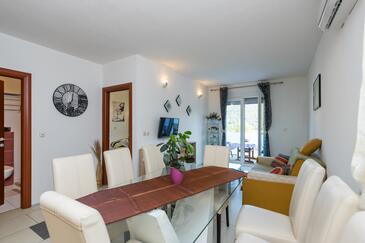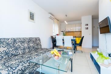 Ferienwohnung bietet Platz für 2 Gäste. Die Betten sind in Schlafzimmern, die es 1 gibt, innerhalb einer Gesamtfläche von 34m2, angeordnet. Die Gäste haben eine eigene Terrasse zur Verfügung, auf der sie in warmen Sommernächten genießen können. Das Apartment bietet Meerblick. Es ist erlaubt, Speisen auf dem Gemeinschafts-Grill vorzubereiten. In der Unterkunftseinheit besteht die Möglichkeit des Mitbringens von Haustieren gegen Aufpreis.