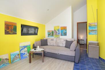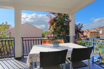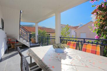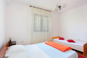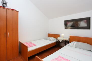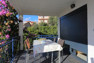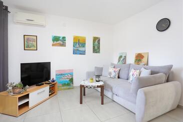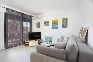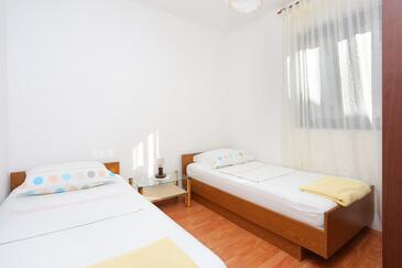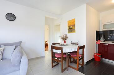 Ferienwohnung bietet Platz für 4 Gäste. Die Betten sind in Schlafzimmern, die es 2 gibt, innerhalb einer Gesamtfläche von 46m2, angeordnet. Die Gäste haben eine eigene Terrasse zur Verfügung, auf der sie in warmen Sommernächten genießen können. Es ist erlaubt, Speisen auf dem Gemeinschafts-Grill vorzubereiten.