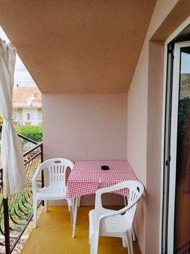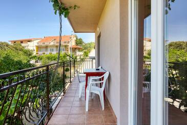 Ferienwohnung bietet Platz für 4 Gäste. Die Betten sind in Schlafzimmern, die es 2 gibt, innerhalb einer Gesamtfläche von 58m2, angeordnet. Die Gäste haben einen eigenen Balkon zur Verfügung, auf der sie in warmen Sommernächten genießen können. Es ist erlaubt, Speisen auf dem Gemeinschafts-Grill vorzubereiten.