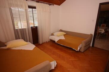 Ferienwohnung bietet Platz für 8 Gäste. Die Betten sind in Schlafzimmern, die es 3 gibt, und in Wohnzimmer, innerhalb einer Gesamtfläche von 95m2, angeordnet. Die Gäste haben eine eigene Terrasse zur Verfügung, auf der sie in warmen Sommernächten genießen können. Das Apartment bietet Meerblick.