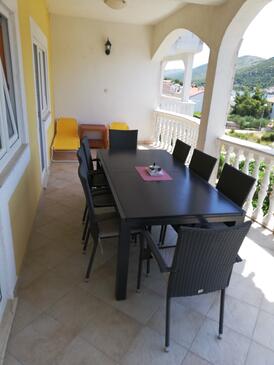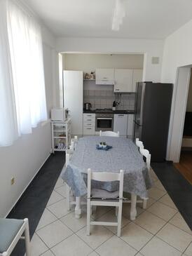 Ferienwohnung bietet Platz für 8 Gäste. Die Betten sind in Schlafzimmern, die es 2 gibt, und in Wohnzimmer, innerhalb einer Gesamtfläche von 85m2, angeordnet. Die Gäste haben eine eigene Terrasse zur Verfügung, auf der sie in warmen Sommernächten genießen können. Das Apartment bietet Meerblick. Es ist erlaubt, Speisen auf dem Gemeinschafts-Grill vorzubereiten.
