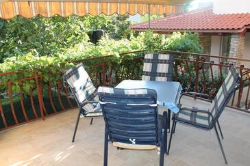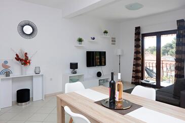 Ferienwohnung bietet Platz für 5 Gäste. Die Betten sind in Schlafzimmern, die es 2 gibt, und in Wohnzimmer, innerhalb einer Gesamtfläche von 52m2, angeordnet. Die Gäste haben einen eigenen Balkon zur Verfügung, auf der sie in warmen Sommernächten genießen können. Es ist erlaubt, Speisen auf dem Gemeinschafts-Grill vorzubereiten.