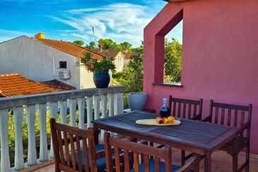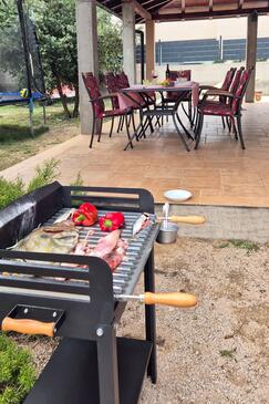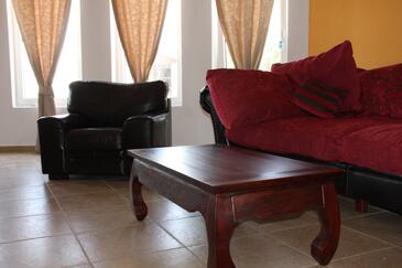 Haus bietet Platz für 8 Gäste. Die Betten sind in Schlafzimmern, die es 5 gibt, innerhalb einer Gesamtfläche von 139m2, angeordnet. Die Gäste haben eine eigene Terrasse zur Verfügung, auf der sie in warmen Sommernächten genießen können. Es ist erlaubt, Speisen auf dem Gemeinschafts-Grill vorzubereiten.