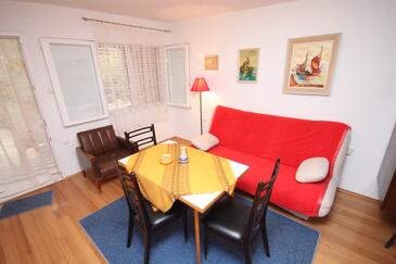 Ferienwohnung bietet Platz für 4 Gäste. Die Betten sind in Schlafzimmern, die es 3 gibt, innerhalb einer Gesamtfläche von 47m2, angeordnet. Die Gäste haben eine eigene Terrasse zur Verfügung, auf der sie in warmen Sommernächten genießen können. Es ist erlaubt, Speisen auf dem Gemeinschafts-Grill vorzubereiten. In der Unterkunftseinheit besteht die Möglichkeit des Mitbringens von Haustieren, und die Dienstleistung ist im Preis der Unterkunft enthalten.