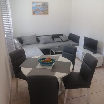Haus bietet Platz für 6 Gäste. Die Betten sind in Schlafzimmern, die es 2 gibt, und in Wohnzimmer, innerhalb einer Gesamtfläche von 43m2, angeordnet. Die Gäste haben eine eigene Terrasse zur Verfügung, auf der sie in warmen Sommernächten genießen können. Für vollen Genuss und Entspannung gibt es einen privaten Grill für Gäste dieser Unterkunft. In der Unterkunftseinheit besteht die Möglichkeit des Mitbringens von Haustieren gegen Aufpreis.