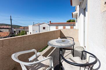 Ferienwohnung bietet Platz für 8 Gäste. Die Betten sind in Schlafzimmern, die es 3 gibt, und in Wohnzimmer, innerhalb einer Gesamtfläche von 81m2, angeordnet. Die Gäste haben eine eigene Terrasse zur Verfügung, auf der sie in warmen Sommernächten genießen können. Es ist erlaubt, Speisen auf dem Gemeinschafts-Grill vorzubereiten. In der Unterkunftseinheit besteht die Möglichkeit des Mitbringens von Haustieren gegen Aufpreis.